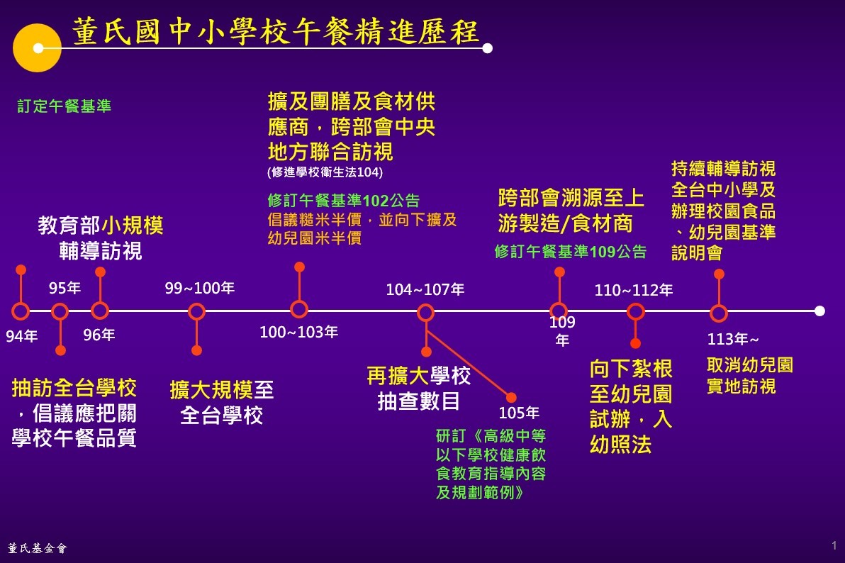 2006-2008抽訪全台學校,辦理倡議應把關學校午餐品質,教育部小規模輔導訪視。